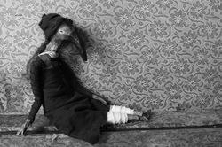 These figures are created with twisted wire, paper, clay, flour and water. I then will rough-stitch fabric, add rope, twine, bits of garden and whatever else I can get my hands on.